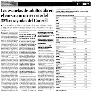 Si el mes d’agost coneixíem la reducció de la subvenció de la Generalitat per al Conservatori de Meliana, en un 65%, el setembre comença també amb males notícies econòmiques per a l’Ajuntament de Meliana. Així, la subvenció de la Conselleria d’Educació per a l’Escola Permanent d’Adults (EPA) es reduirà en un 45%, dels 44.900 € del 2009 als 24.647 del 2010, una reducció de 20.300 €.