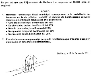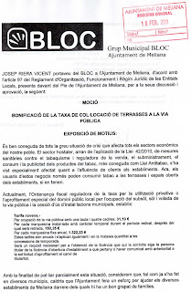 En el pròxim ple ordinari de febrer, que serà dijous 3 de març, a les 20.30 h a l’Ajuntament, es debatrà la moció presentada pel BLOC per a bonificar les terrasses dels bars amb motiu de l’aplicació de l’anomenada Llei Antitabac.