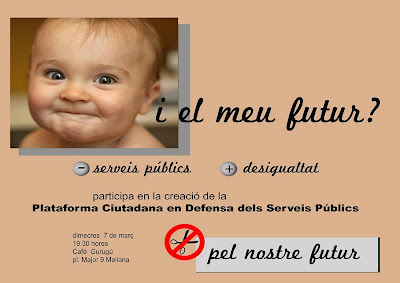 Per tot això, ciutadans i ciutadanes, treballadors i treballadores, usuaris i usuàries dels serveis públics, persones de Meliana indignades amb la situació i preocupades per les retallades patides pels serveis públics al nostre país i al nostre poble, convoquem a una reunió per a la constitució d’una